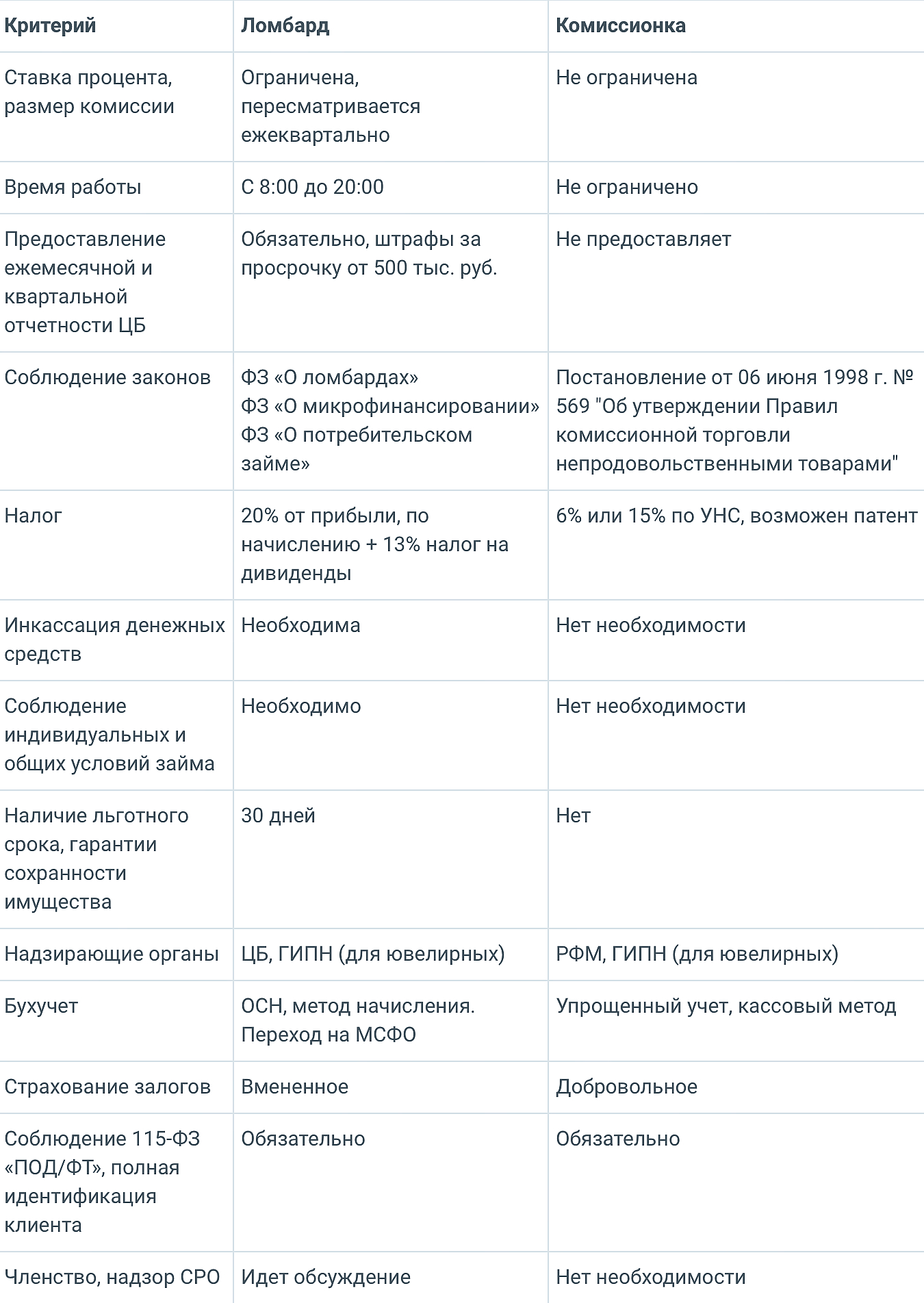 В регионах давно трудятся консультанты, помогающие с переводом ломбарда в формат комиссионного магазина за символическую сумму в 15-20 тыс. руб. Главное, в итоге комиссионка работает в правовом поле, законна. За исключением, когда в названии используется слово ЛОМБАРД или в договоре комиссии используется слово