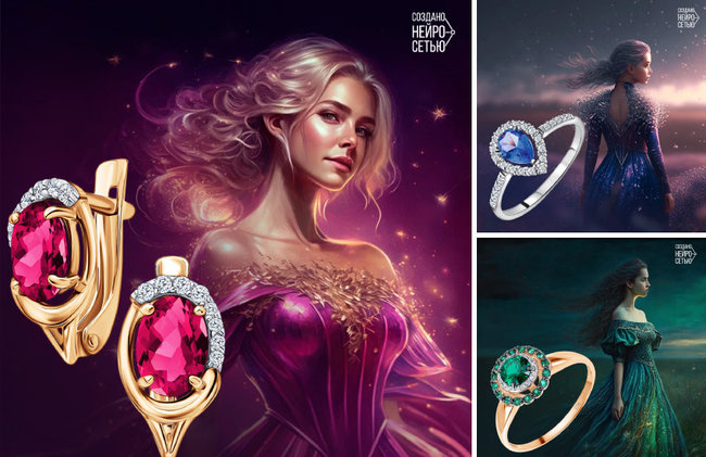 Нейросеть Midjorney, которая генерирует изображения на основе текстовых запросов, визуализировала портреты клиенток «585*ЗОЛОТОЙ», предпочитающих украшения с различными драгоценными камнями из ассортимента сети.В своей работе Midjorney отталкивалась от двух категорий данных. Во-первых, запрос состоял из характеристик камней и описаний конкретных ювелирных изделий, которые можно приобрести в магазинах бренда. И во-вторых, нейросети предложили проанализировать данные из реальных маркетинговых портретов клиентов по сегменту предпочитаемых инкрустаций. А именно: возраст, семейное положение, другие социально-демографические характеристики тех клиенток, которые чаще других выбирают определенные камни - рубины, изумруды и танзаниты.