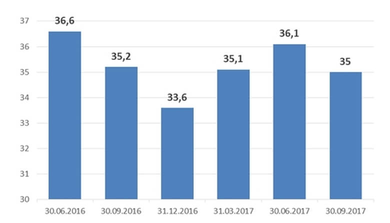 Динамика портфеля ломбардов показывает нисходящий тренд, но Аналитический отдел связывает это в первую очередь с уменьшением количества действующих ломбардов, делать выводы о сжатии ломбардного рынка пока рано, надо дождаться хотя бы итогов года. Хотя логика подсказывает, что при закрытии/ликвидации ломбардов их клиенты с прежней потребностью в деньгах должны перетечь в действующие организации, а итоговая сумма портфелей остаться прежней. Пока же вопреки росту потребительского кредитования ломбарды единственные уходят в минус – портфель в 35 миллиардов на 30 сентября 2017 года. Согласно сезонности, четвертый квартал должен показать еще более удручающие цифры, а вот больше или меньше итогов 2016 года – покажет время. Напомним, в 2016 году рост портфеля к 2015 году составил 14,4%.